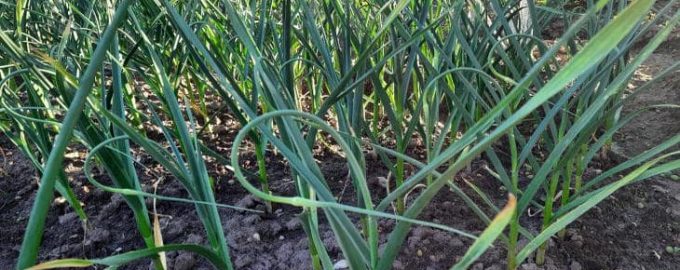 Sīpolu un ķiploku saknes aug dažādos dziļumos, stādot ar intervālu, un nekonkurē par ūdeni un uzturu.